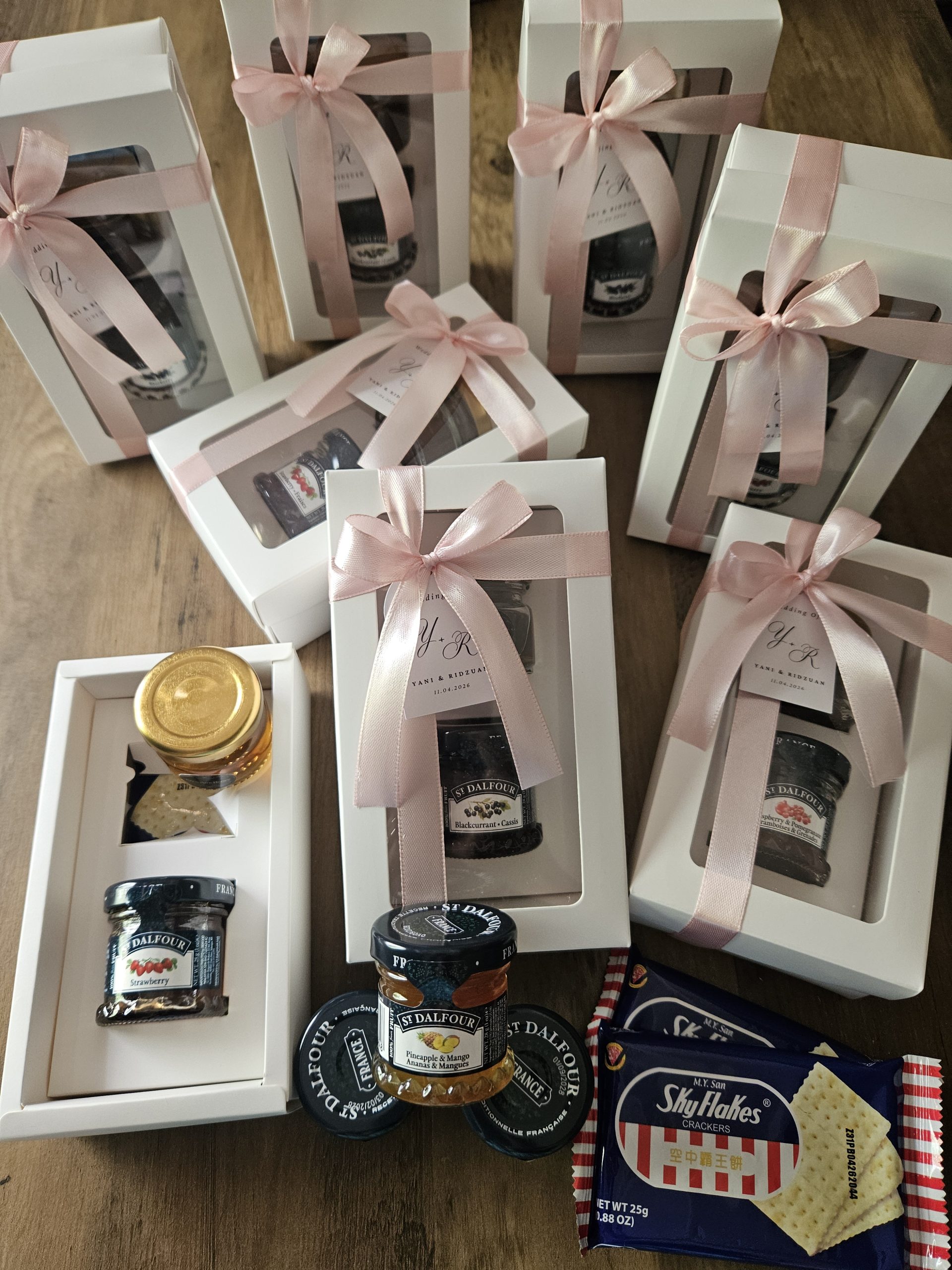 Each box is packed with a 25ml pure honey & St Dalfour jam, along with a pack of Skyflakes crackers.
